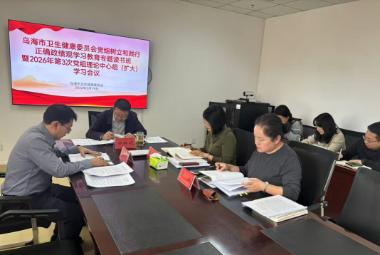 3月18日—19日,乌海市卫健委党组举办树立和践行正确政绩观学习教育专题读书班暨2026年第3次党组理论学习中心组(扩大)学习会议。委党组班子成员参加,委机关各科室负责人列席。