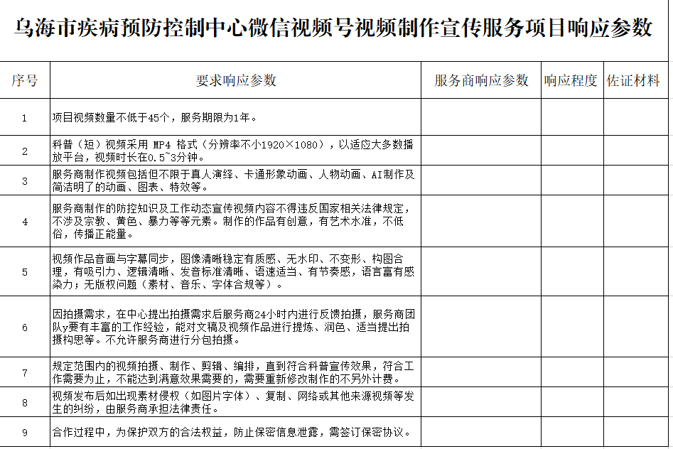 乌海市疾病预防控制中心微信视频号视频制作宣传服务项目单位内议价,现诚邀符合条件的服务商参加议价,现将有关事项公告如下: